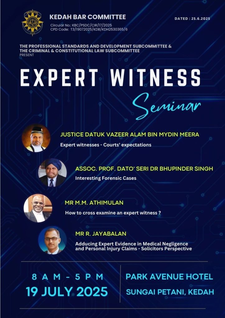 Reposting from https://www.linkedin.com/posts/jayabalan-raman-kutty-96b2a277_expert-evidence-seminar-on-expert-witness-activity-7352616435459805184-6v_-?utm_source=share&utm_medium=member_desktop&rcm=ACoAAFW1KIQBfYAHtUF7xIsB4OpcWOwWEGAlOBg